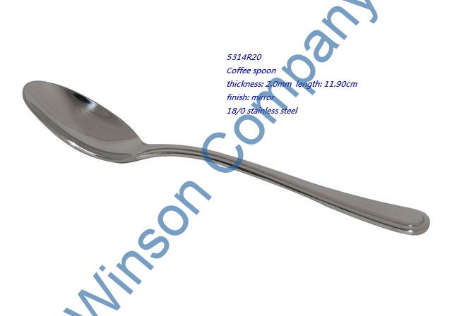 5314R20-Coffee spoon ← Previous Next → 5314R20 Coffee spoon thickness: 2.0mm length: 11.90cm finish: mirror 18/0 stainless steel