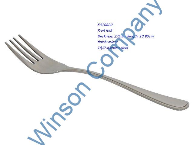 5310R20-Fruit fork ← Previous Next → 5310R20 Fruit fork thickness: 2.0mm length: 13.90cm finish: mirror 18/0 stainless steel
