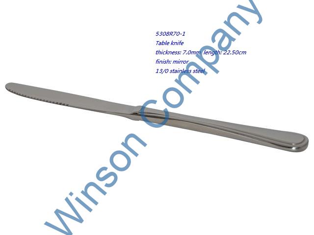 5308R70-1-Table knife ← Previous Next → 5308R70-1 Table knife thickness: 7.0mm length: 22.50cm finish: mirror 13/0 stainless steel