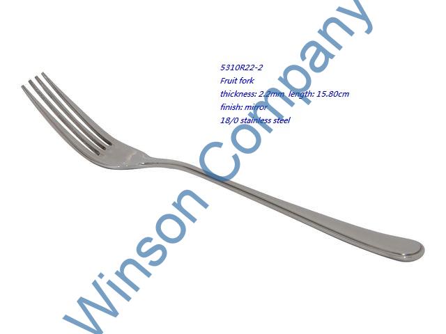 5310R22-2-Fruit fork ← Previous Next → 5310R22-2 Fruit fork thickness: 2.2mm length: 15.80cm finish: mirror 18/0 stainless steel