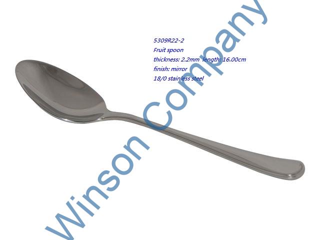 5309R22-2-Fruit spoon ← Previous Next → 5309R22-2 Fruit spoon thickness: 2.2mm length: 16.00cm finish: mirror 18/0 stainless steel