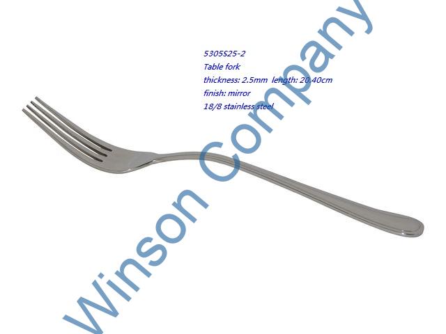 5305S25-2-Table fork ← Previous Next → 5305S25-2 Table fork thickness: 2.5mm length: 20.40cm finish: mirror 18/8 stainless steel