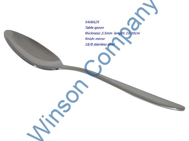 5406S25-Table spoon ← Previous Next → 5406S25 Table spoon thickness: 2.5mm length: 19.00cm finish: mirror 18/8 stainless steel