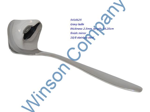 5416S25-Gravy ladle ← Previous Next → 5416S25 Gravy ladle thickness: 2.5mm length: 16.20cm finish: mirror 18/8 stainless steel