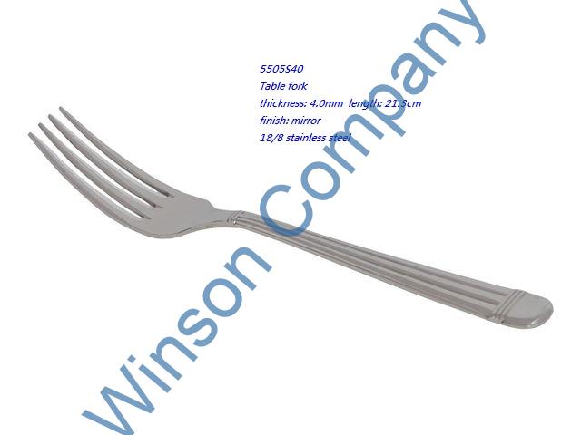 5505S40-Table fork ← Previous Next → 5505S40 Table fork thickness: 4.0mm length: 21.3cm finish: mirror 18/8 stainless steel