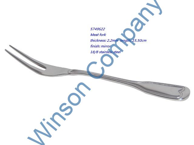 5749S22-Meat fork ← Previous Next → 5749S22 Meat fork thickness: 2.2mm length: 15.50cm finish: mirror 18/8 stainless steel