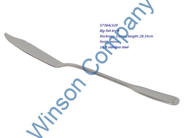 5736ALS28-Big fish knife ← Previous Next → 5736ALS28 Big fish knife thickness: 2.8mm length: 28.35cm finish: mirror 18/8 stainless steel