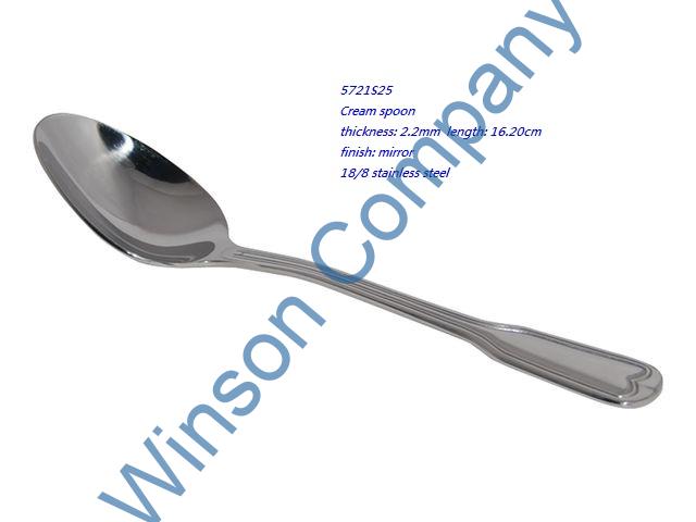 5721S25-Cream spoon ← Previous Next → 5721S25 Cream spoon thickness: 2.2mm length: 16.20cm finish: mirror 18/8 stainless steel