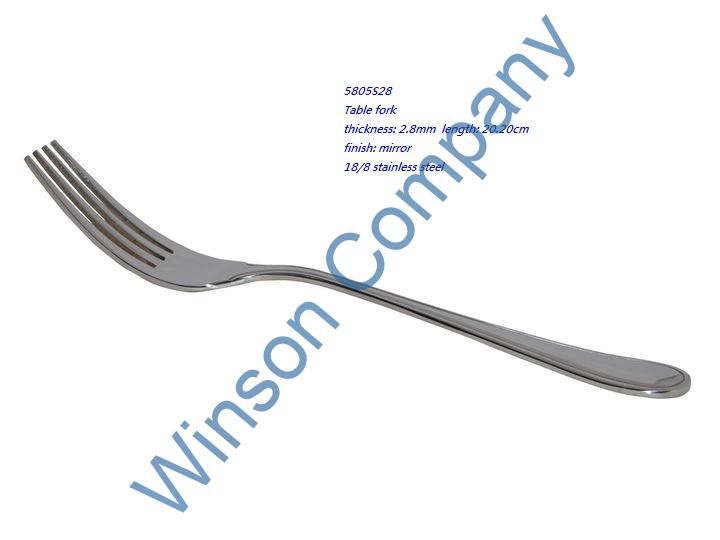 5805S28-Table fork ← Previous Next → 5805S28 Table fork thickness: 2.8mm length: 20.20cm finish: mirror 18/8 stainless steel