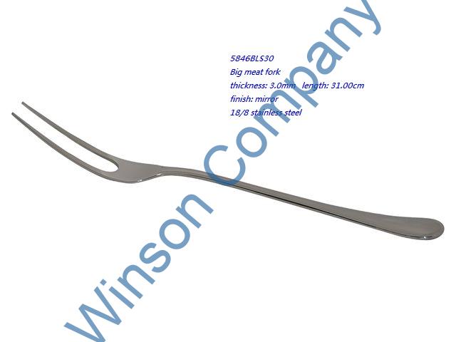 5846BLS30-Big meat fork ← Previous Next → 5846BLS30 Big meat fork thickness: 3.0mm length: 31.00cm finish: mirror 18/8 stainless steel
