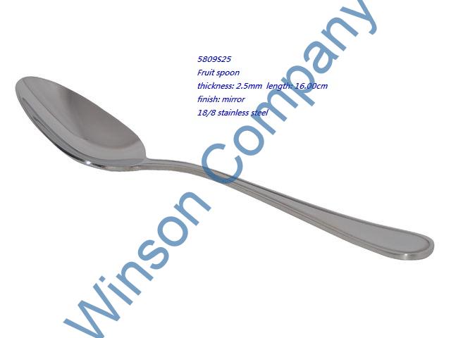 5809S25-Fruit spoon ← Previous Next → 5809S25 Fruit spoon thickness: 2.5mm length: 16.00cm finish: mirror 18/8 stainless steel