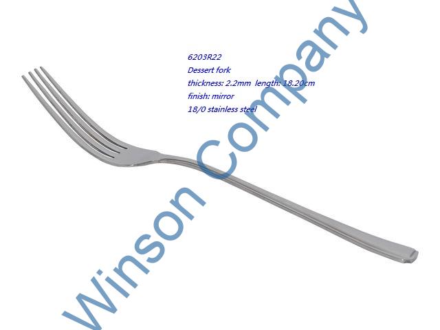 6203R22-Dessert fork ← Previous Next → 6203R22 Dessert fork thickness: 2.2mm length: 18.20cm finish: mirror 18/0 stainless steel
