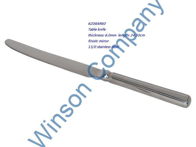 6208AR60-Table knife ← Previous Next → 6208AR60 Table knife thickness: 6.0mm length: 24.50cm finish: mirror 13/0 stainless steel