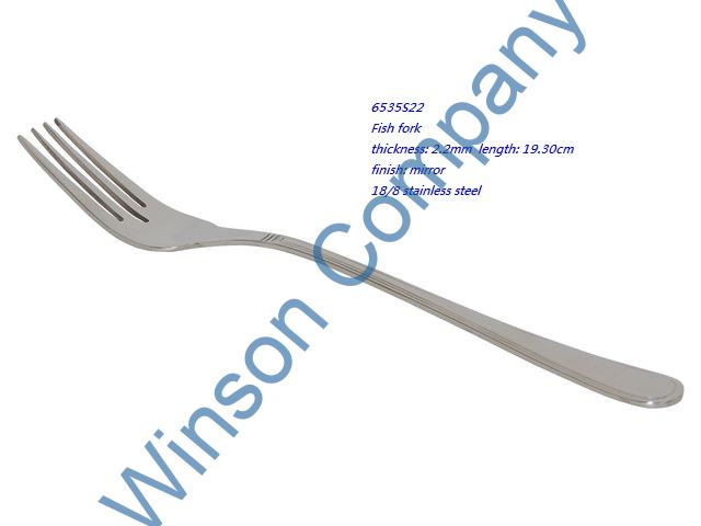 6535S22-Fish fork ← Previous Next → 6535S22 Fish fork thickness: 2.2mm length: 19.30cm finish: mirror 18/8 stainless steel
