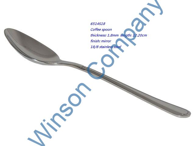 6514S18-Coffee spoon ← Previous Next → 6514S18 Coffee spoon thickness: 1.8mm length: 12.20cm finish: mirror 18/8 stainless steel