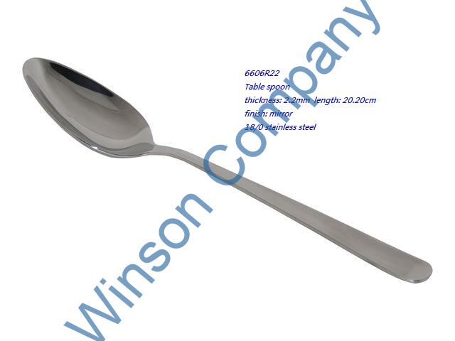 6606R22-Table spoon ← Previous Next → 6606R22 Table spoon thickness: 2.2mm length: 20.20cm finish: mirror 18/0 stainless steel