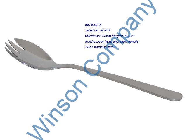 6626BR25-Salad server fork ← Previous Next → 6626BR25 Salad server fork thickness:2.5mm length:19.1cm finish:mirror head and satin handle 18/0 stainless steel