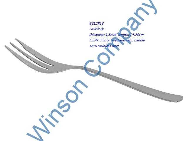 6612R18-Fruit fork ← Previous Next → 6612R18 Fruit fork thickness: 1.8mm length: 14.20cm finish: mirror head and satin handle 18/0 stainless steel