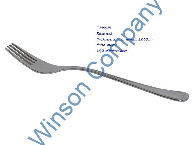 7205S25 Table fork thickness: 2.5mm length: 19.60cm finish: mirror 18/8 stainless steel