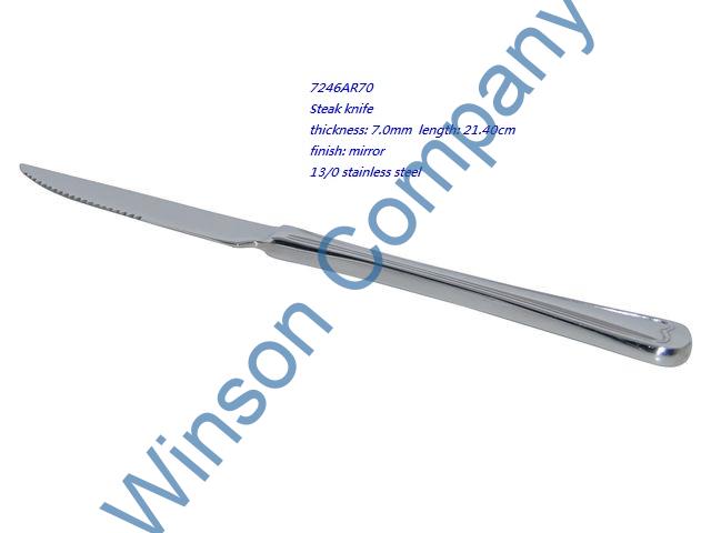 7246AR70-Steak knife ← Previous Next → 7246AR70 Steak knife thickness: 7.0mm length: 21.40cm finish: mirror 13/0 stainless steel