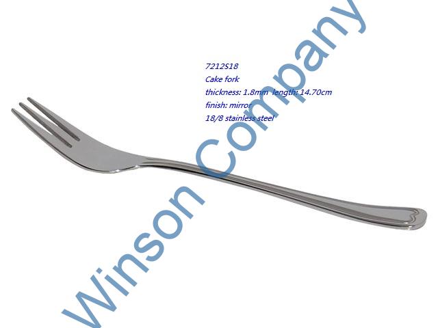 7212S18-Cake fork ← Previous Next → 7212S18 Cake fork thickness: 1.8mm length: 14.70cm finish: mirror 18/8 stainless steel