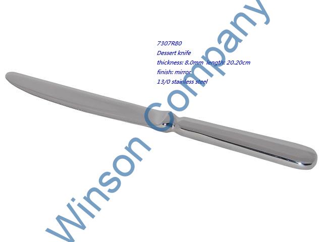 7307R80-Dessert knife ← Previous Next → 7307R80 Dessert knife thickness: 8.0mm length: 20.20cm finish: mirror 13/0 stainless steel