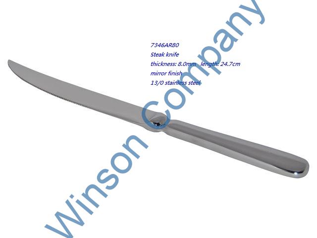 7346AR80-Steak knife ← Previous Next → 7346AR80 Steak knife thickness: 8.0mm length: 24.7cm mirror finish 13/0 stainless steel
