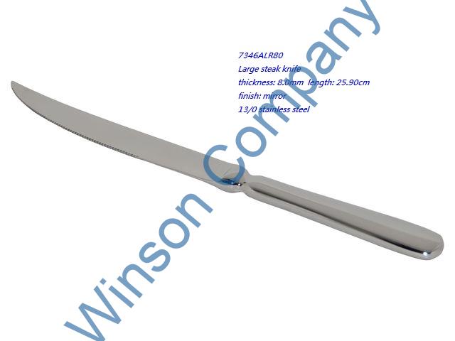 7346ALR80-Large steak knife ← Previous Next → 7346ALR80 Large steak knife thickness: 8.0mm length: 25.90cm finish: mirror 13/0 stainless steel
