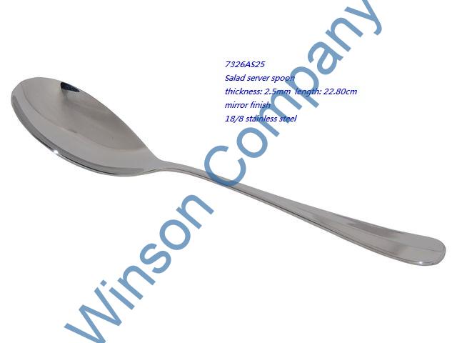 7326AS25-Salad server spoon ← Previous Next → 7326AS25 Salad server spoon thickness: 2.5mm length: 22.80cm mirror finish 18/8 stainless steel