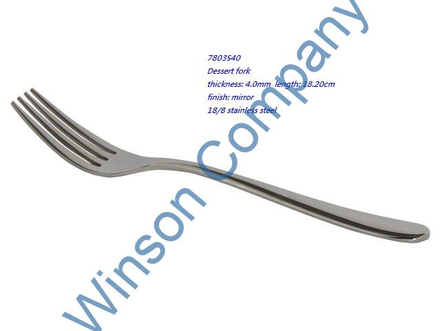 7803S40-Dessert fork ← Previous Next → 7803S40 Dessert fork thickness: 4.0mm length: 18.20cm finish: mirror 18/8 stainless steel