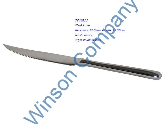 7846R12-Steak knife ← Previous Next → 7846R12 Steak knife thickness: 12.0mm length: 23.50cm finish: mirror 13/0 stainless steel