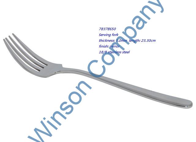 7837BS50-Serving fork ← Previous Next → 7837BS50 Serving fork thickness: 5.0mm length: 23.30cm finish: mirror 18/8 stainless steel