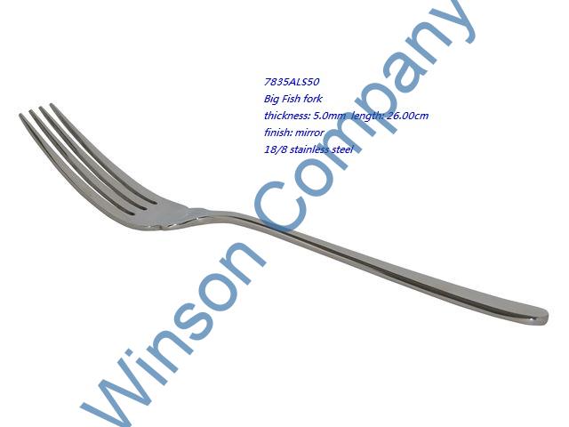 7835ALS50-Big Fish fork ← Previous Next → 7835ALS50 Big Fish fork thickness: 5.0mm length: 26.00cm finish: mirror 18/8 stainless steel