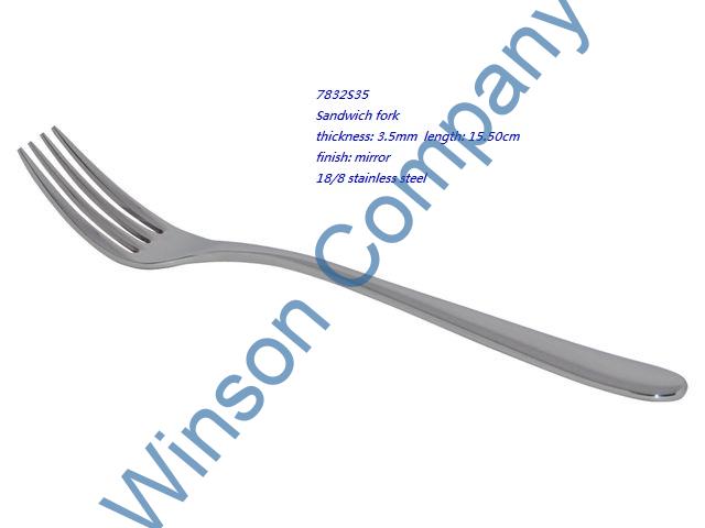 7832S35-Sandwich fork ← Previous Next → 7832S35 Sandwich fork thickness: 3.5mm length: 15.50cm finish: mirror 18/8 stainless steel