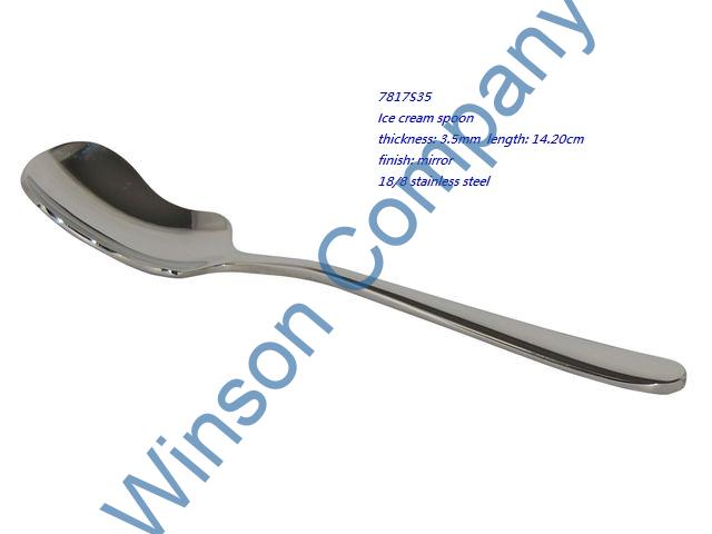 7817S35-Ice cream spoon ← Previous Next → 7817S35 Ice cream spoon thickness: 3.5mm length: 14.20cm finish: mirror 18/8 stainless steel