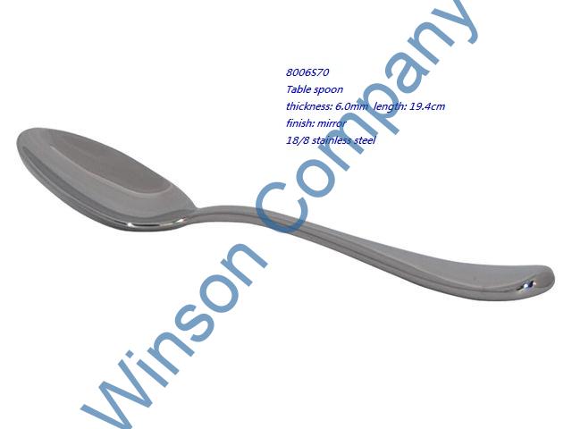 8006S70-Table spoon ← Previous Next → 8006S70 Table spoon thickness: 6.0mm length: 19.4cm finish: mirror 18/8 stainless steel