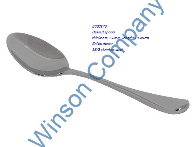 8002S70-Dessert spoon ← Previous Next → 8002S70 Dessert spoon thickness: 7.0mm length: 19.40cm finish: mirror 18/8 stainless steel