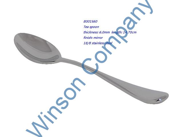 8001S60-Tea spoon ← Previous Next → 8001S60 Tea spoon thickness: 6.0mm length: 14.70cm finish: mirror 18/8 stainless steel
