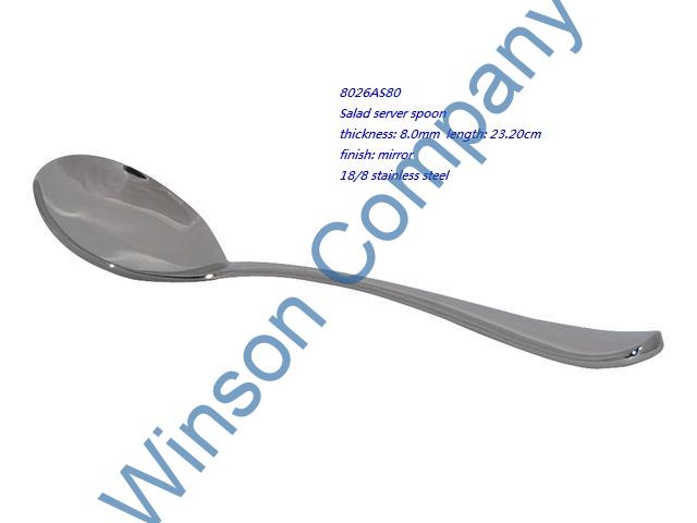 8026AS80-Salad server spoon ← Previous Next → 8026AS80 Salad server spoon thickness: 8.0mm length: 23.20cm finish: mirror 18/8 stainless steel