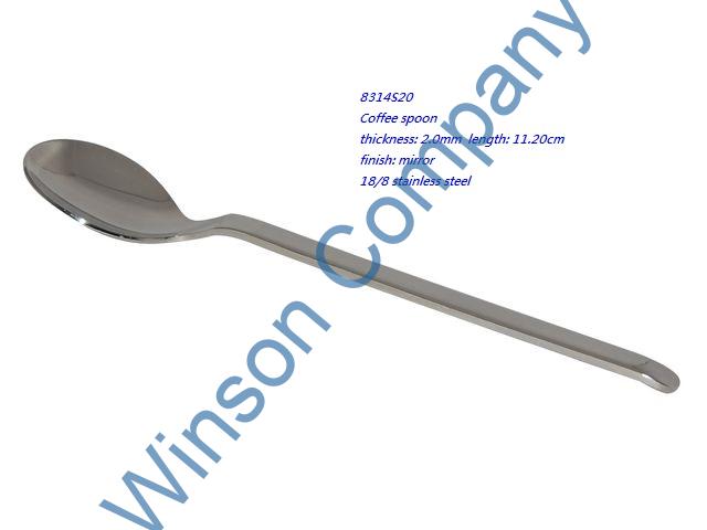 8314S20-Coffee spoon ← Previous Next → 8314S20 Coffee spoon thickness: 2.0mm length: 11.20cm finish: mirror 18/8 stainless steel