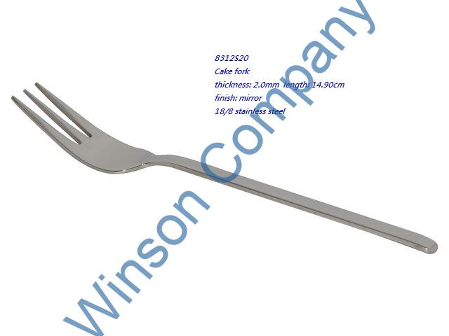 8312S20-Cake fork ← Previous Next → 8312S20 Cake fork thickness: 2.0mm length: 14.90cm finish: mirror 18/8 stainless steel