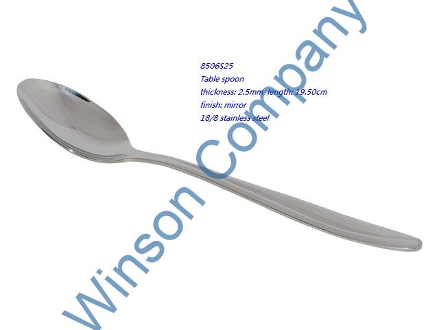 8506S25-Table spoon ← Previous Next → 8506S25 Table spoon thickness: 2.5mm length: 19.50cm finish: mirror 18/8 stainless steel