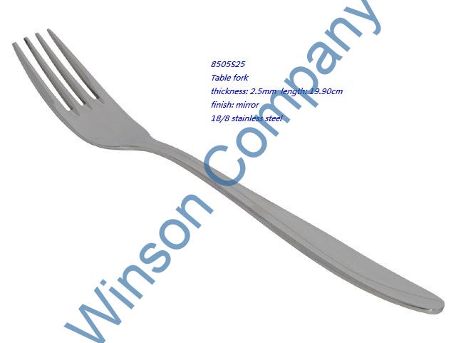 8505S25-Table fork ← Previous Next → 8505S25 Table fork thickness: 2.5mm length: 19.90cm finish: mirror 18/8 stainless steel