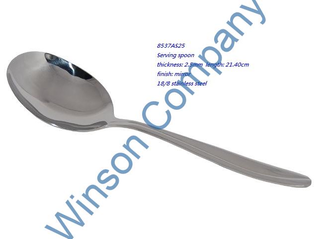 8537AS25-Serving spoon ← Previous Next → 8537AS25 Serving spoon thickness: 2.5mm length: 21.40cm finish: mirror 18/8 stainless steel