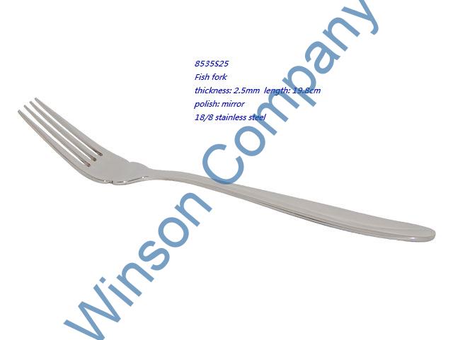 8535S25-Fish fork ← Previous Next → 8535S25 Fish fork thickness: 2.5mm length: 19.8cm polish: mirror 18/8 stainless steel