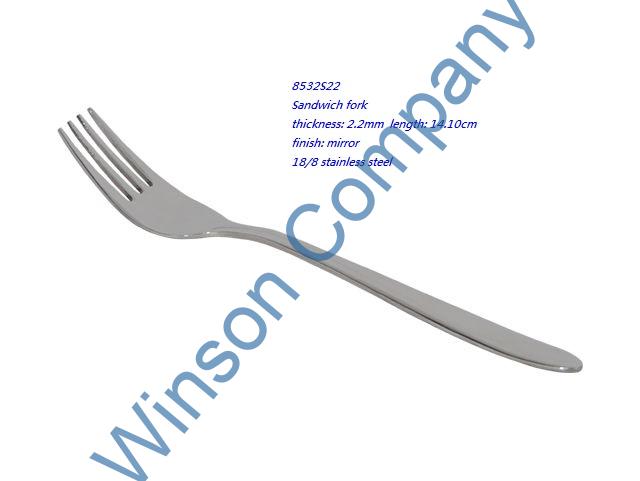 8532S22-Sandwich fork ← Previous Next → 8532S22 Sandwich fork thickness: 2.2mm length: 14.10cm finish: mirror 18/8 stainless steel