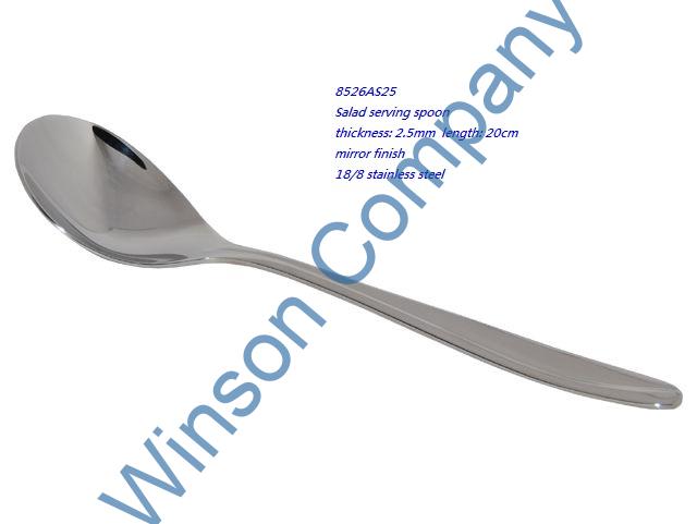 8526AS25-Salad serving spoon ← Previous Next → 8526AS25 Salad serving spoon thickness: 2.5mm length: 20cm mirror finish 18/8 stainless steel