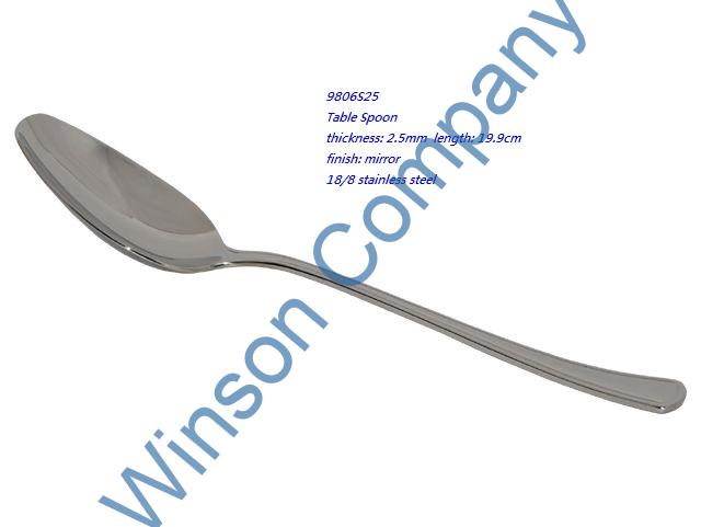 9806S25-Table Spoon ← Previous Next → 9806S25 Table Spoon thickness: 2.5mm length: 19.9cm finish: mirror 18/8 stainless steel