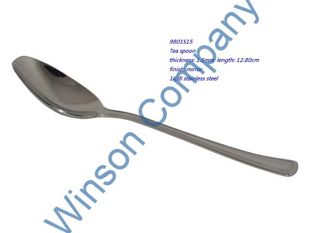 9801S15 Tea spoon thickness: 1.5mm length: 12.80cm finish: mirror 18/8 stainless steel
