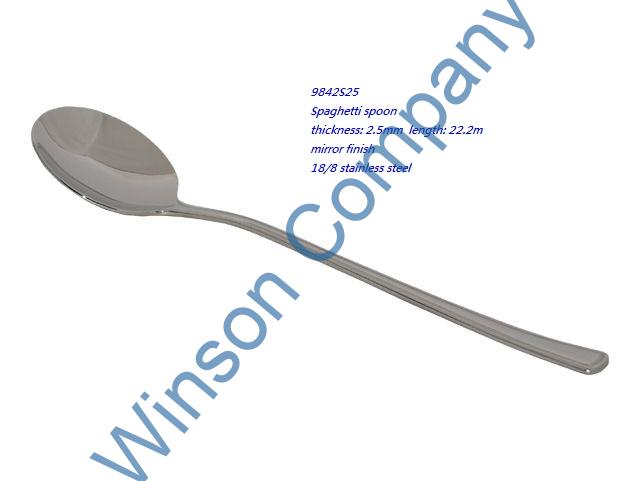 9842S25-Spaghetti spoon ← Previous Next → 9842S25 Spaghetti spoon thickness: 2.5mm length: 22.2m mirror finish 18/8 stainless steel
